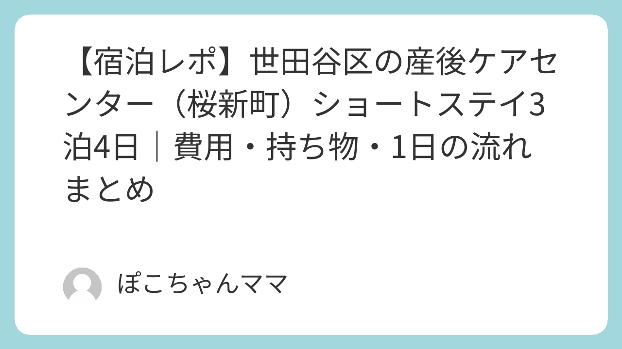 【体験レポ】世田谷区の産後ケアセンター(桜新町)ショートステイ3泊4日|費用・持ち物・1日の流れまとめ | 東京世田谷 新米ママブログ