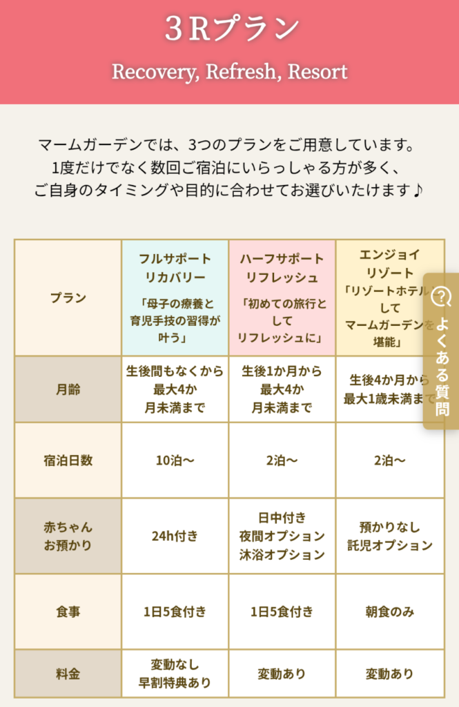 「生後1ヶ月〜4ヶ月未満向け」「最低宿泊日数2日」として