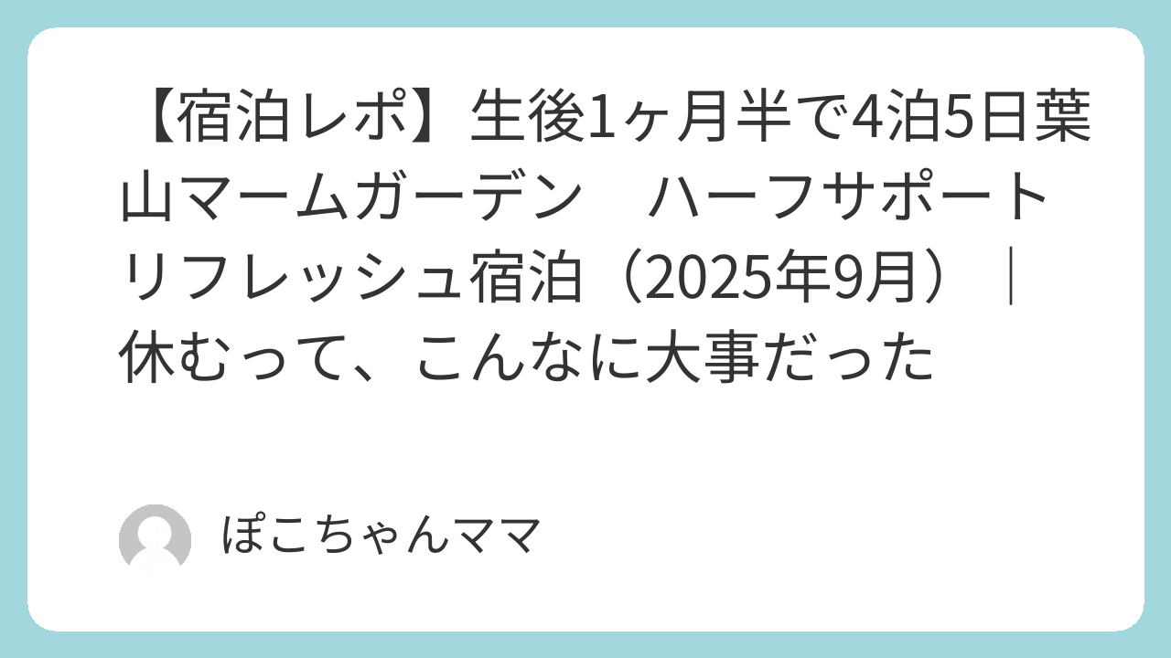 【宿泊レポ】生後1ヶ月半で4泊5日葉山マームガーデン ハーフサポート リフレッシュ宿泊(2025年9月)|休むって、こんなに大事だった
