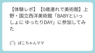 0歳児連れOK 【体験レポ】【0歳連れで美術館】上野・国立西洋美術館「BABYといっしょに ゆったりDAY」に参加してみた 国立西洋美術館で開催された「BABYといっしょに ゆったりDAY」に0歳の赤ちゃん連れで参加。ベビーカーOK、授乳室や休憩室など子連れ配慮を実体験ベースでレポートします。 2026.01.28 0歳児連れOK子連れ旅行・おでかけ東京産後・育児(0歳)