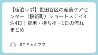 世田谷区 【宿泊レポ】世田谷区の産後ケアセンター(桜新町)ショートステイ3泊4日|費用・持ち物・1日の流れまとめ 産後の「寝たい・休みたい」を叶えた世田谷区の産後ケアセンター体験談。産後3週で3泊4日一発当選、手出し0円にできた支払い方法、持ち物の落とし穴(歯ブラシ等)や相談内容まで正直にまとめました。 2026.02.22 世田谷区子育て支援産後ケア産後ケアホテル産後・育児(0歳)